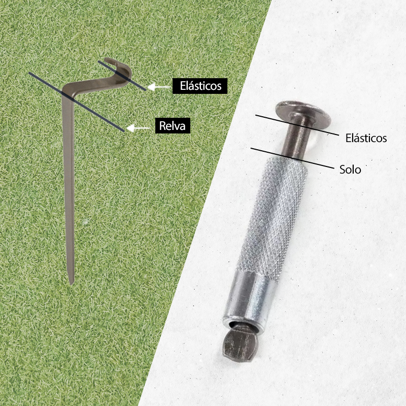 Se a fixação for na relva é necessário numa piqueta de aço inoxidável. É um acessório de uso comum desenhado para fixar na relva e terra. Mas caso seja uma outra superficie pode optar por fixação com parafusos. Um sistema de fixação fácil de montar e desmontar. Com este sistema, a sua cobertura estará em tensão toda a temporada de inverno. Poderá tirar e por a cobertura facilmente com passar as borrachas pelo parafuso e tensar a cobertura.